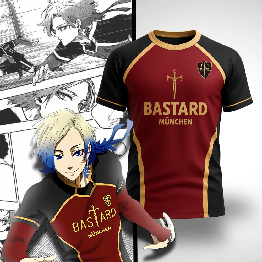 This Bastard München Blue Lock jersey feels heavier in presence than most Blue Lock kits.