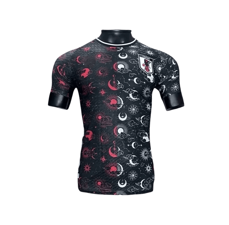 The Japan "SUN & MOON" Jersey balances harmony and contrast. This unique Japan Football Kit draws inspiration from celestial duality, combining fire and calm, light and night. Available now at NipponKits, as part of the Japan Special Edition Football Shirt collection.