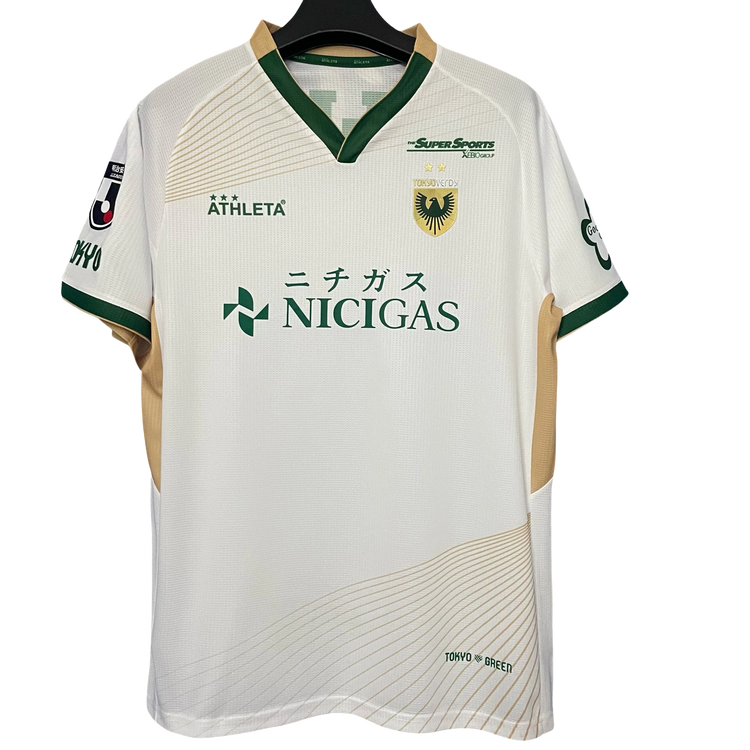 The Tokyo Verdy 2025/26 Away Football Jersey represents the refined heritage of Japan’s capital club. Crafted in elegant white, gold, and green, this official J.League 2025/26 away shirt blends tradition with modern Tokyo aesthetics.
